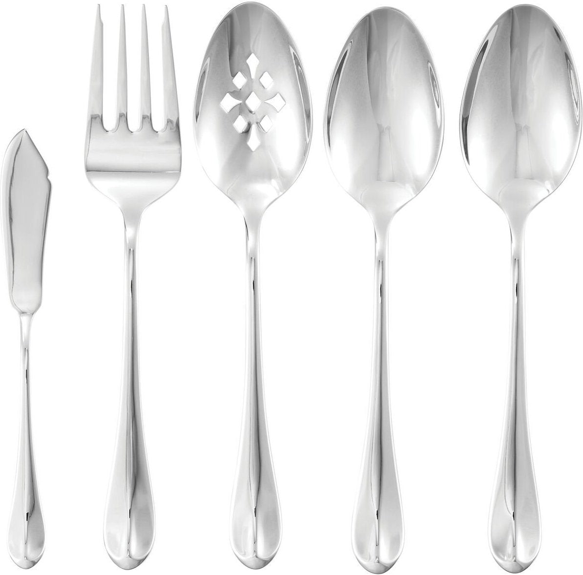 Set Includes: 8 x dinner knives, 8 x dinner forks, 8 x dinner spoons, 8 x salad forks, 8 x teaspoons, 1 Large Serving Spoon, 1 Large Slotted Serving Spoon, 1 Large Serving Fork, 1 Sugar Spoon and 1 Butter Knife.