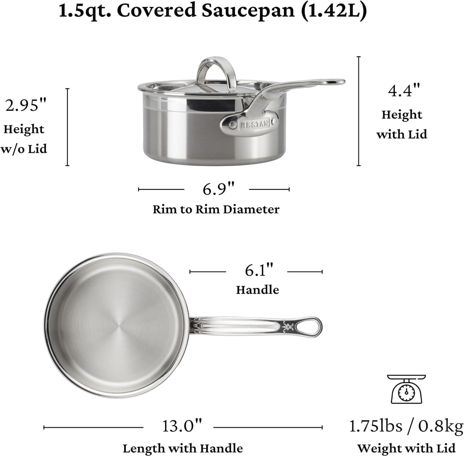 The Hestan ProBond 1.5 Qt Stainless Steel Sauce Pan with Lid is a premium kitchen essential designed for precision cooking. Handcrafted in Italy, this saucepan combines advanced materials and thoughtful design to deliver exceptional performance and durability.