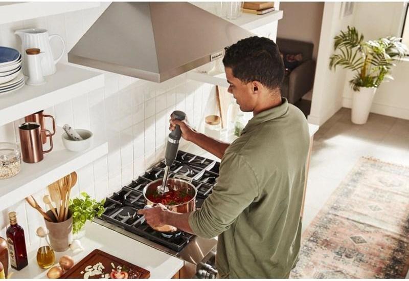 All the Power You Expect, without the Cord. Go where ambition takes you with the Cordless Hand Blender from KitchenAid. Designed with a powerful rechargeable Lithium Ion Battery, the new cordless hand blender delivers optimal run time and performance, so you can cook wherever (indoor use only), whatever, and however you choose. Blends 25 bowls of soup on a full charge (based on 12 ounce bowls (354 ml), 7 batches, Tomato Basil Soup.) All the power you expect, without the cord. Included are: the Whisk Attachment, Chopper Attachment, Removable Pan Guard, and BPA-Free Blending Pitcher with Lid.