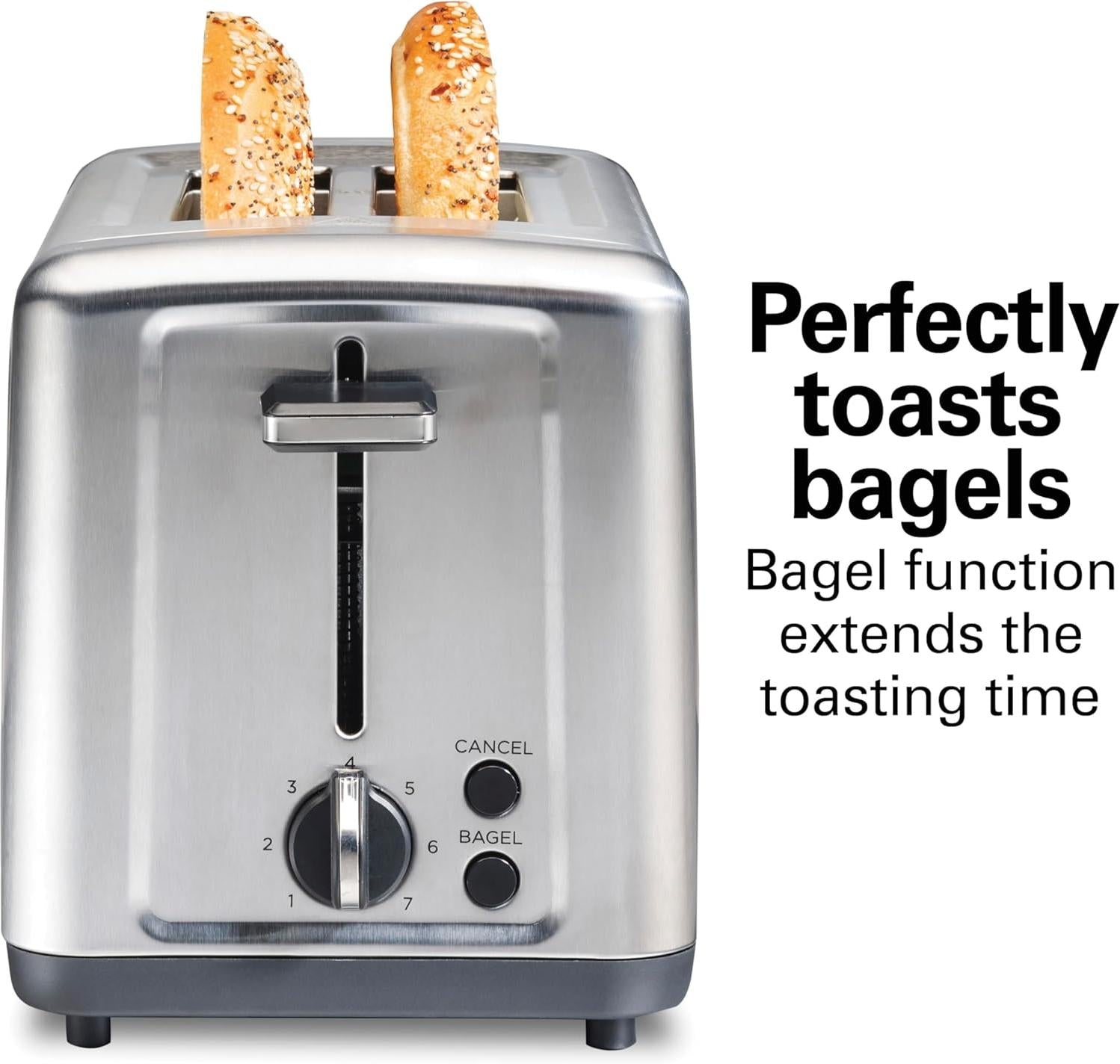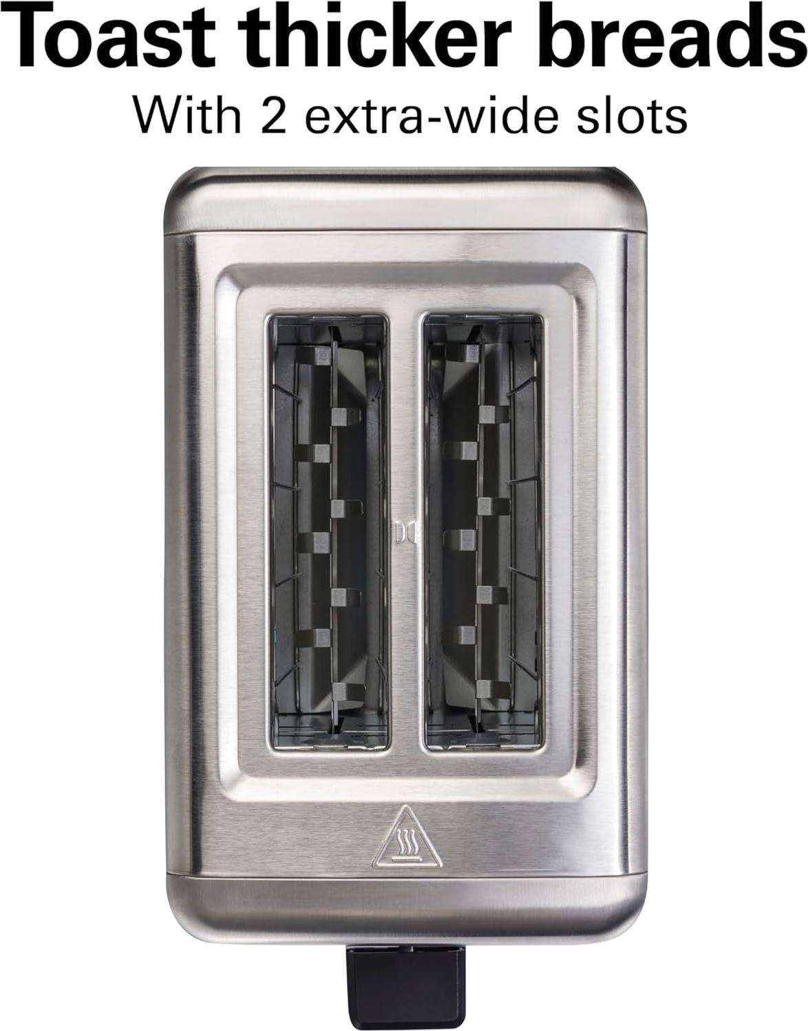 The Hamilton Beach 2 Slice Brushed Stainless Steel Toaster with Extra-Wide Slots combines functionality with style, making it a reliable choice for your toasting needs.