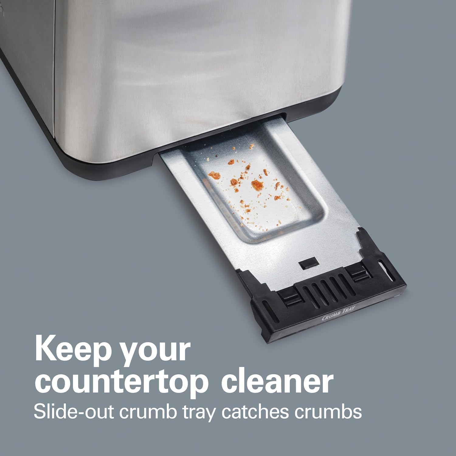 • Slide-Out Crumb Tray: Facilitates easy cleaning and keeps countertops tidy.