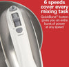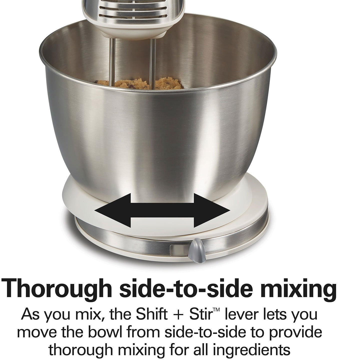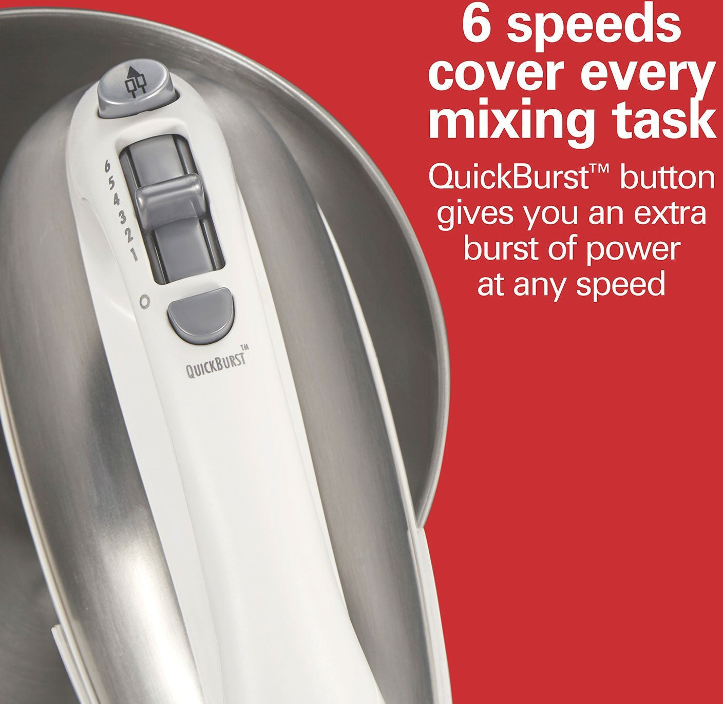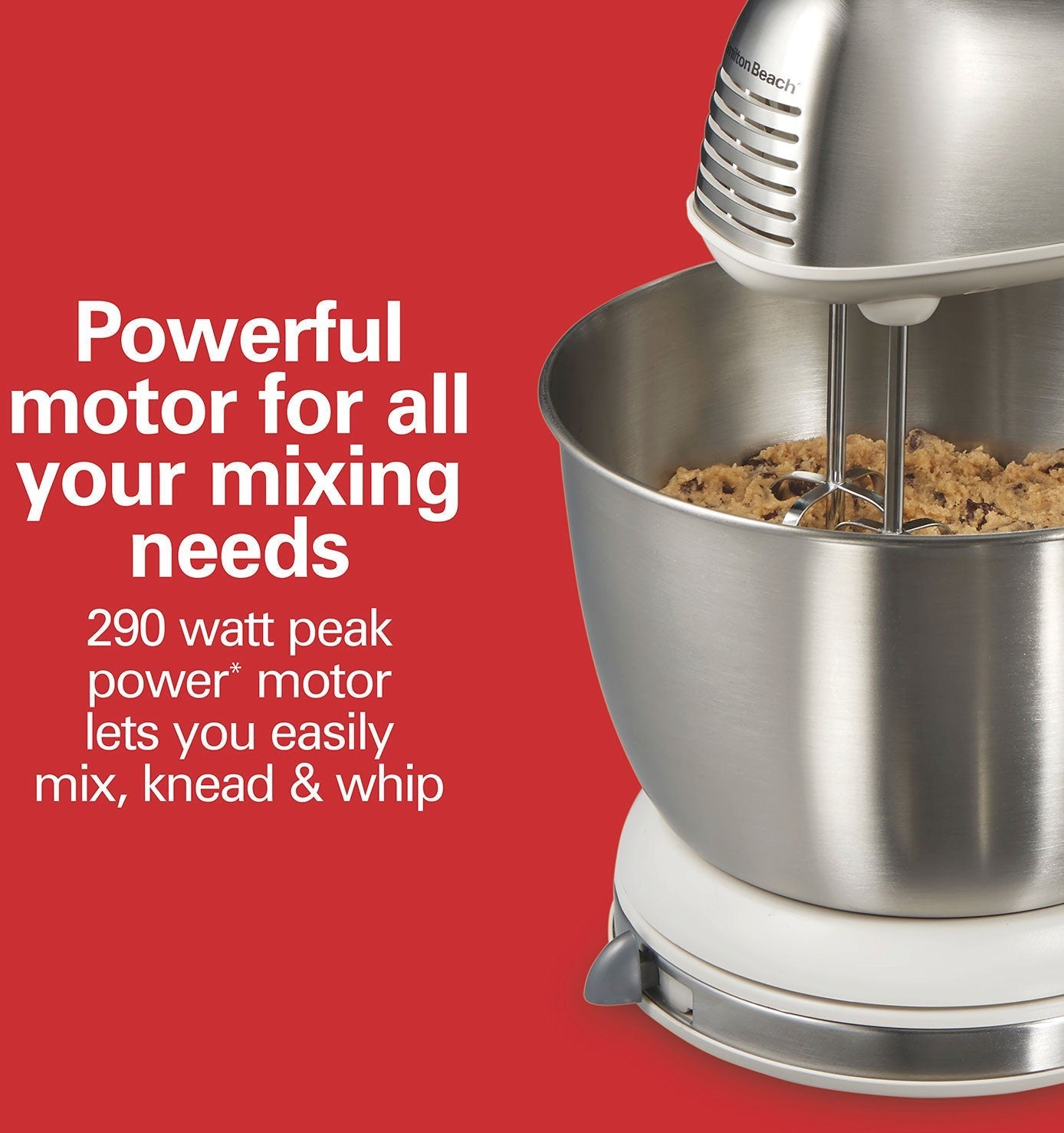The Hamilton Beach® 6 Speed White Classic Stand Mixer is a versatile kitchen appliance designed to make your baking and mixing tasks easier and more efficient. This mixer offers the best of both worlds by allowing you to use it as a stand mixer or detach the hand mixer for more flexibility. With a powerful 290-watt peak power motor and six adjustable speeds, it can handle a variety of tasks from whipping cream to kneading dough.