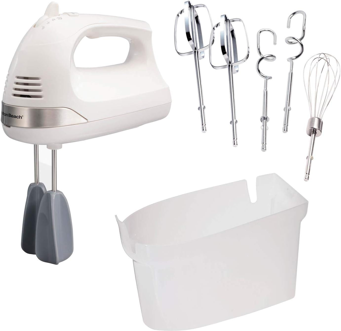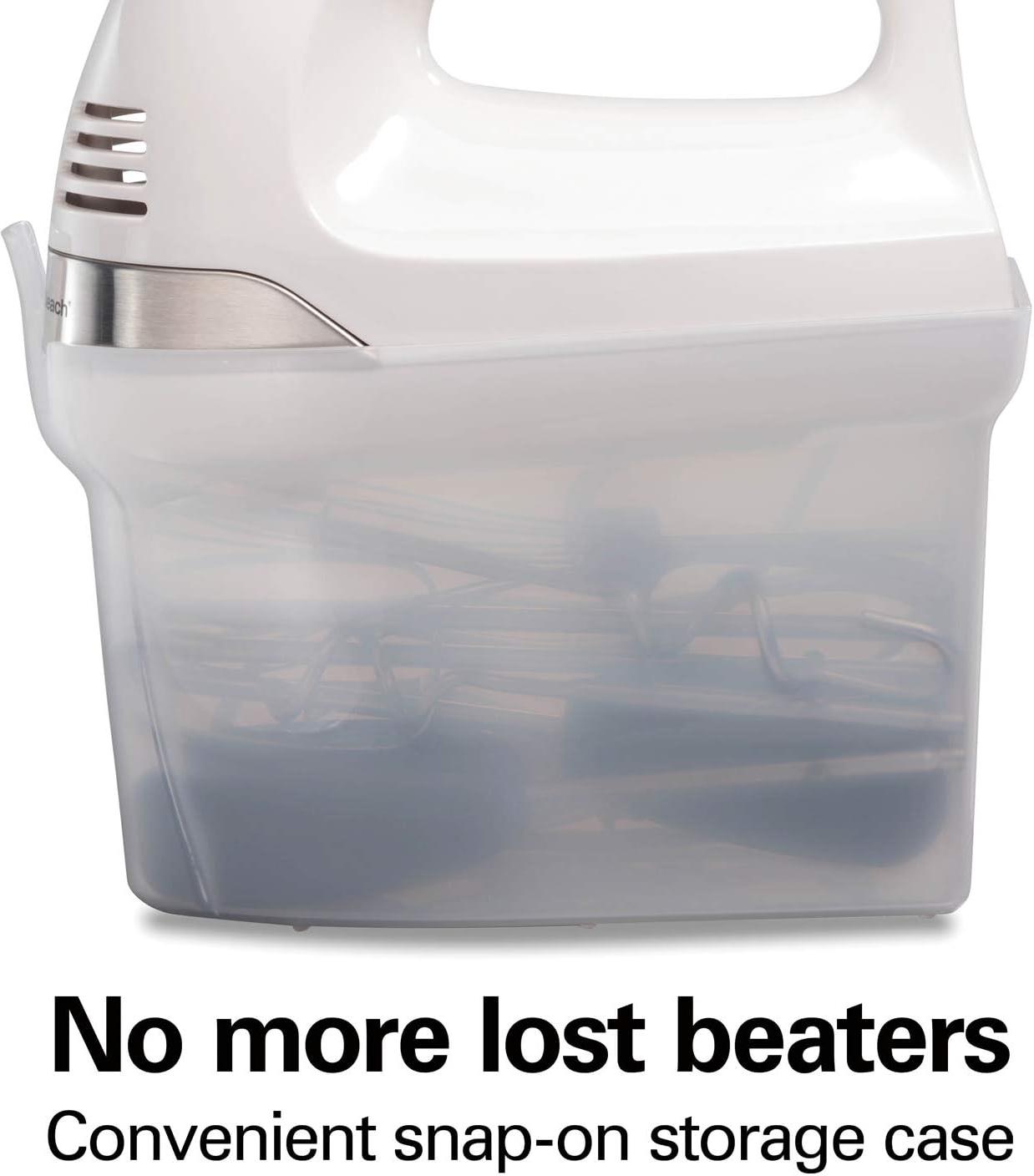 Hamilton Beach - 6 Speed White Hand Mixer with Easy Clean Beaters and Snap-On Case - 62636