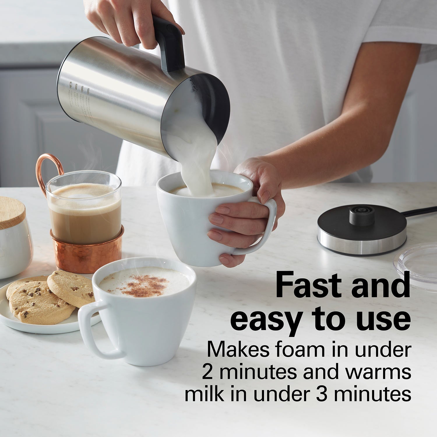 Automatic Shutoff: Ensures safety and energy efficiency by automatically turning off when frothing or warming is complete.
