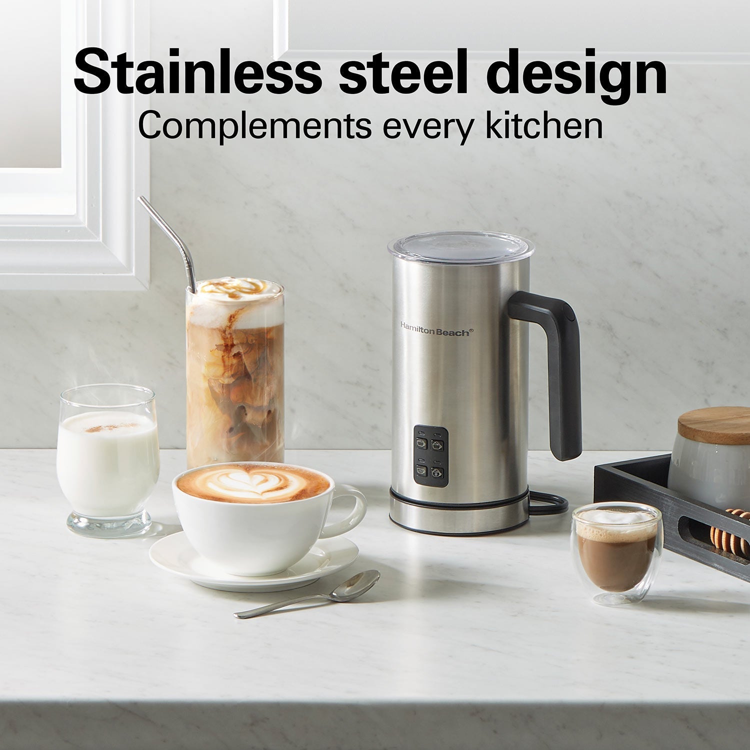 Elevate your coffee experience at home with the Hamilton Beach Milk Frother and Warmer, designed to create professional-quality frothed milk for lattes, cappuccinos, and more. Experience café-quality drinks from the comfort of your home with the Hamilton Beach Milk Frother and Warmer. Whether you prefer a rich latte or a frothy cappuccino, this appliance delivers exceptional results with minimal effort.
