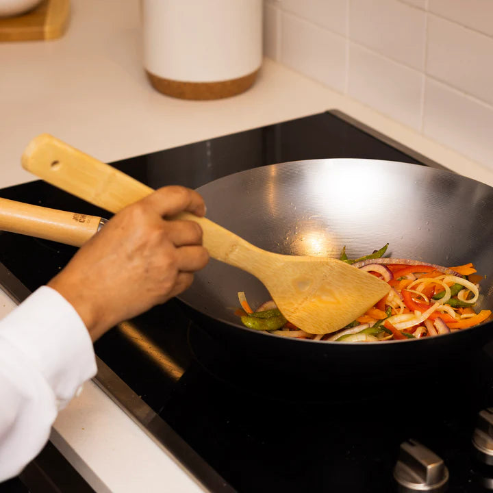 • Burnished Bamboo Finish: Enhances resistance to heat and moisture while remaining gentle on nonstick and seasoned surfaces.