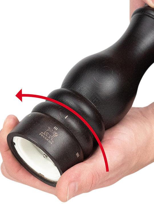 Our patented system helps you select your desired grind. Twist to create your precise balance of flavor through six settings, from extra fine to very coarse. The two-stage grinding mechanism first effortlessly cracks and then grinds the peppercorns to the desired coarseness