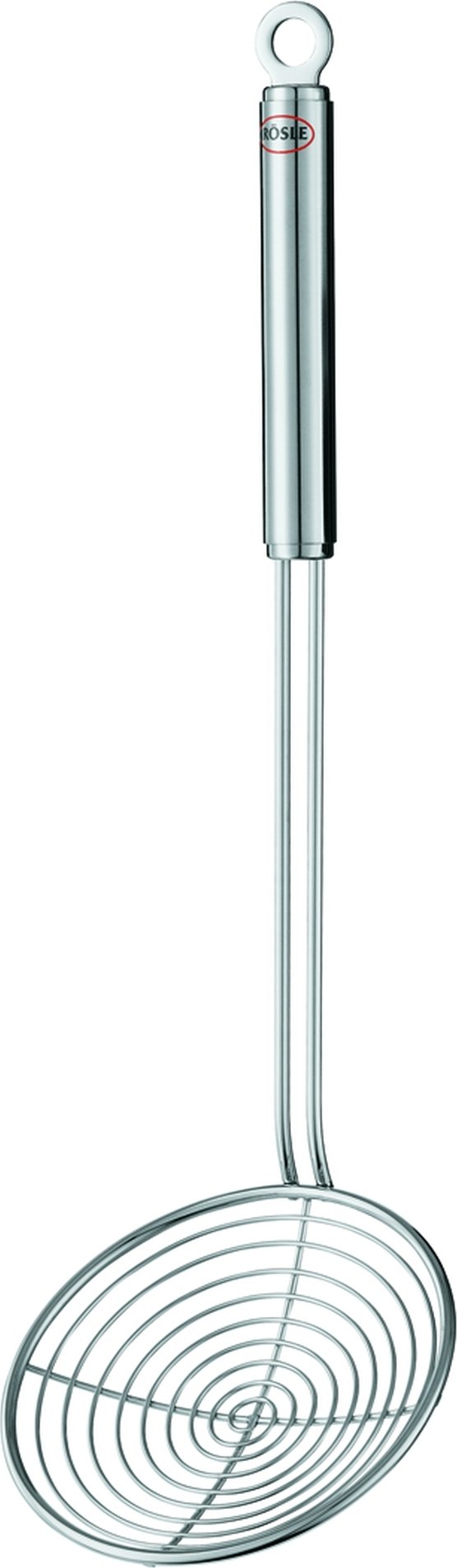 For lifting out fried food. The front part of this skimmer is from a wire loop. The wide distance between wires ensures quick and efficient draining away of fats.