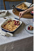This nesting set features 2 rectangular dishes measuring 6-inch x 7.5-inch and 7.5-inch x 10.5-inch. They are perfect for lasagna, casseroles, and desserts, as well as roasted meats and vegetables. The beautiful cherry red porcelain enamel glaze prevents moisture absorption during baking, so baked goods won't dry out. Diffuses heat gently and retains heat exceptionally well. Oven and broiler safe up to 572°F, ceramics can also be used in the microwave and are dishwasher safe. Highly scratch and impact resistant, STAUB ceramics are conveniently freezer safe.
