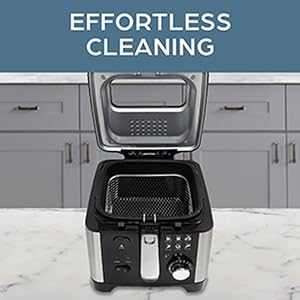 - Frying vessel and the basket are dishwasher-safe for easy, at-home frying and effortless cleaning