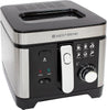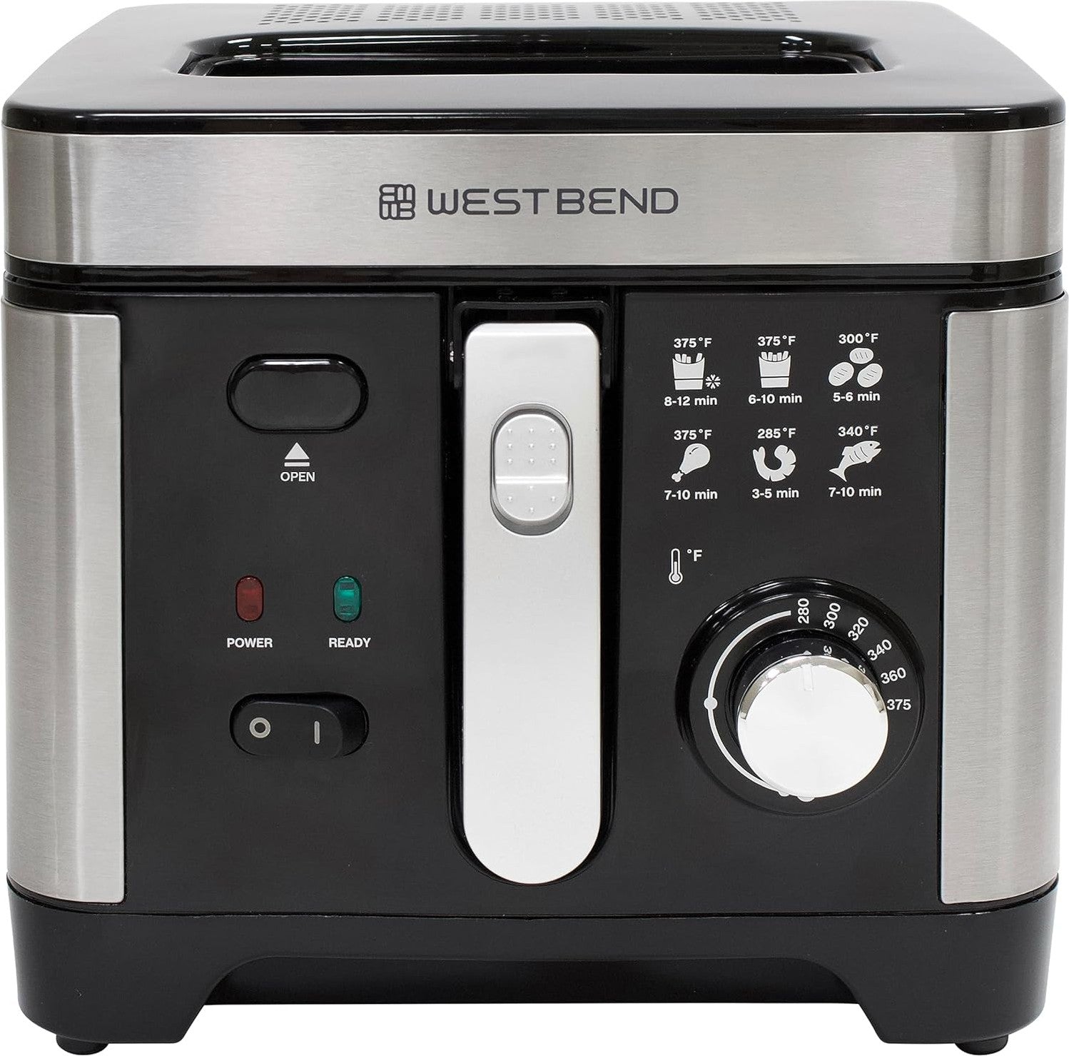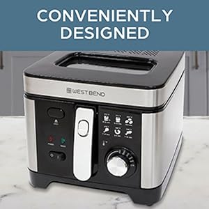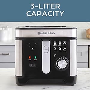 Fry a variety of your favorite foods with the West Bend Deep Fryer. With a 3-liter capacity, this deep fryer can accommodate family-sized batch frying. It has a dial with adjustable temperature control and a temperature guide for versatile guess-free frying. Avoid splatters by monitoring frying progress through the easy-view clear window at the top without opening the lid. Once frying is complete, hook the mesh basket to the frying vessel for convenient draining and food removal. The frying vessel and the basket are dishwasher-safe for easy, at-home frying and cleaning. Make restaurant quality fried food at home with the West Bend 1500-watt electric Deep Fryer. Covered by the West Bend 12-Month Limited Warranty.