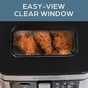 Avoid splashes by monitoring frying progress through the easy-view window