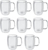 This set consists of eight (8) borosilicate double walled espresso mugs each (134ml). This material is insensitive to temperature fluctuations and is therefore ideal for both hot and cold drinks and is light yet strong. Each glass has perfect functionality, keeping hot drinks hot and cold items cold.