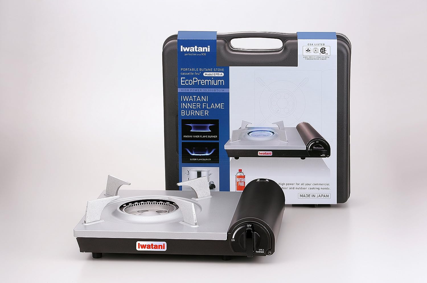 The Iwatani Eco Premium Butane Stove is a highly efficient portable cooktop designed for both indoor and outdoor use. With a powerful 12,000 BTU brass burner, this stove ensures quick and consistent cooking. Its eco-friendly design maximizes butane utilization, reducing fuel waste and ensuring optimal performance. The stove features a user-friendly magnetic locking system for the fuel canister, making it easy to load and secure. Additionally, it comes equipped with a built-in windbreaker to protect the flame from wind and drafts, ensuring steady cooking conditions. For added safety, the stove includes an automatic safety stop that shuts off the gas flow if the pressure becomes unsafe. Made in Japan, the Iwatani Eco Premium Butane Stove combines reliability, efficiency, and convenience in a compact, portable design.