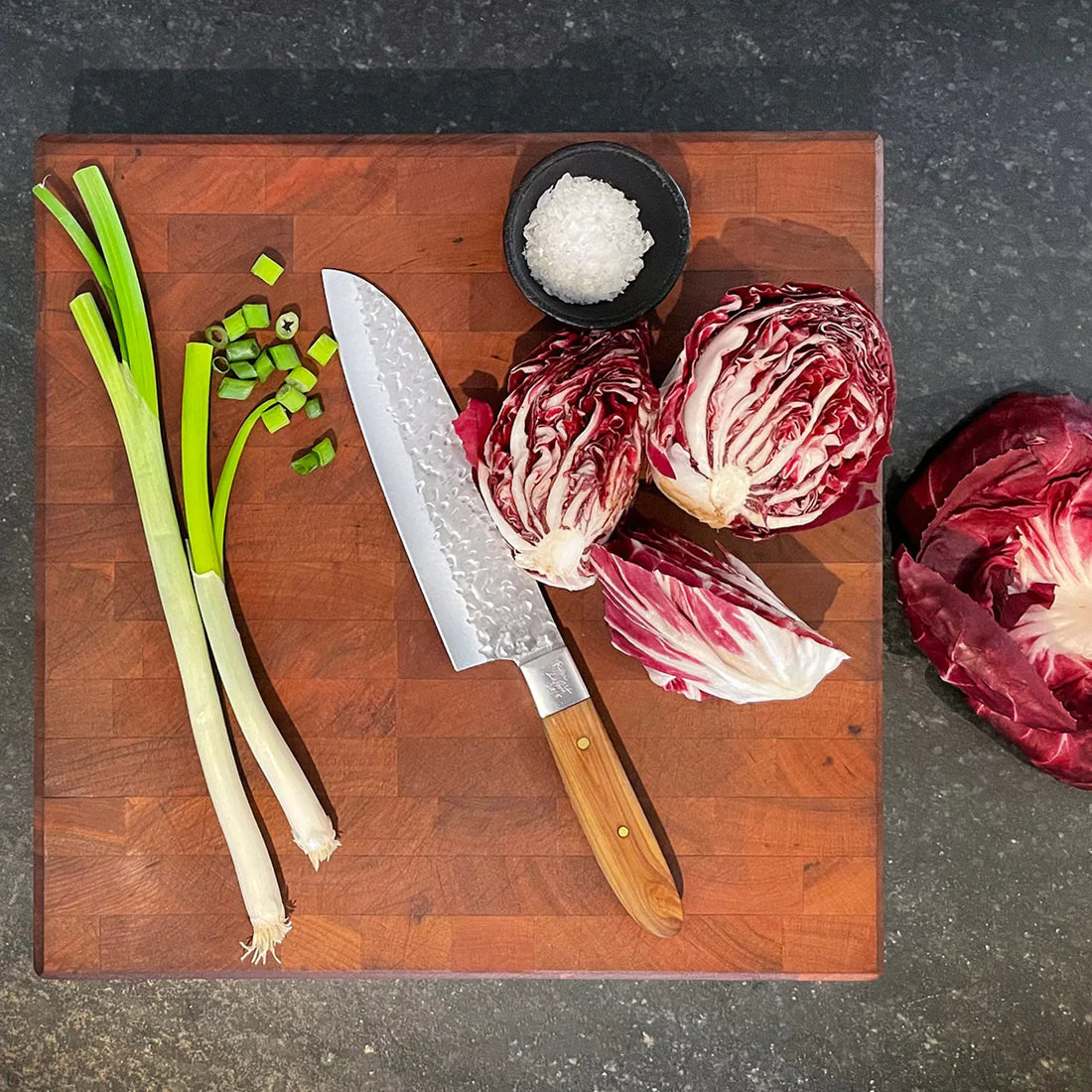 Introducing the J.K. Adams 12" x 12" x 2" Cherry Professional Series End Grain Cutting Board, a premium kitchen essential that exemplifies the perfect blend of craftsmanship, functionality, and elegance. Crafted with precision and care by J.K. Adams, a brand synonymous with quality and innovation, this cutting board is designed to meet the exacting standards of both professional chefs and home cooks alike. Crafted from high-quality cherry wood, this cutting board boasts a rich and luxurious appearance that adds warmth and sophistication to any kitchen. Cherry wood is renowned for its beautiful color, fine grain, and exceptional durability, making it a preferred choice among chefs and culinary enthusiasts. The 12" x 12" dimensions and 2" thickness provide ample surface area for cutting, chopping, and slicing, making it suitable for a wide range of culinary tasks. The standout feature of the J.K. Adams Professional Series End Grain Cutting Board is its end grain construction. This construction method involves arranging wood fibers perpendicular to the cutting surface, resulting in a board that is exceptionally durable and gentle on knife edges. End grain boards are renowned for their ability to self-heal, minimizing visible knife marks and ensuring long-lasting performance. Whether you're preparing vegetables, meats, or bread, this cutting board offers a reliable and forgiving surface for all your kitchen endeavors.