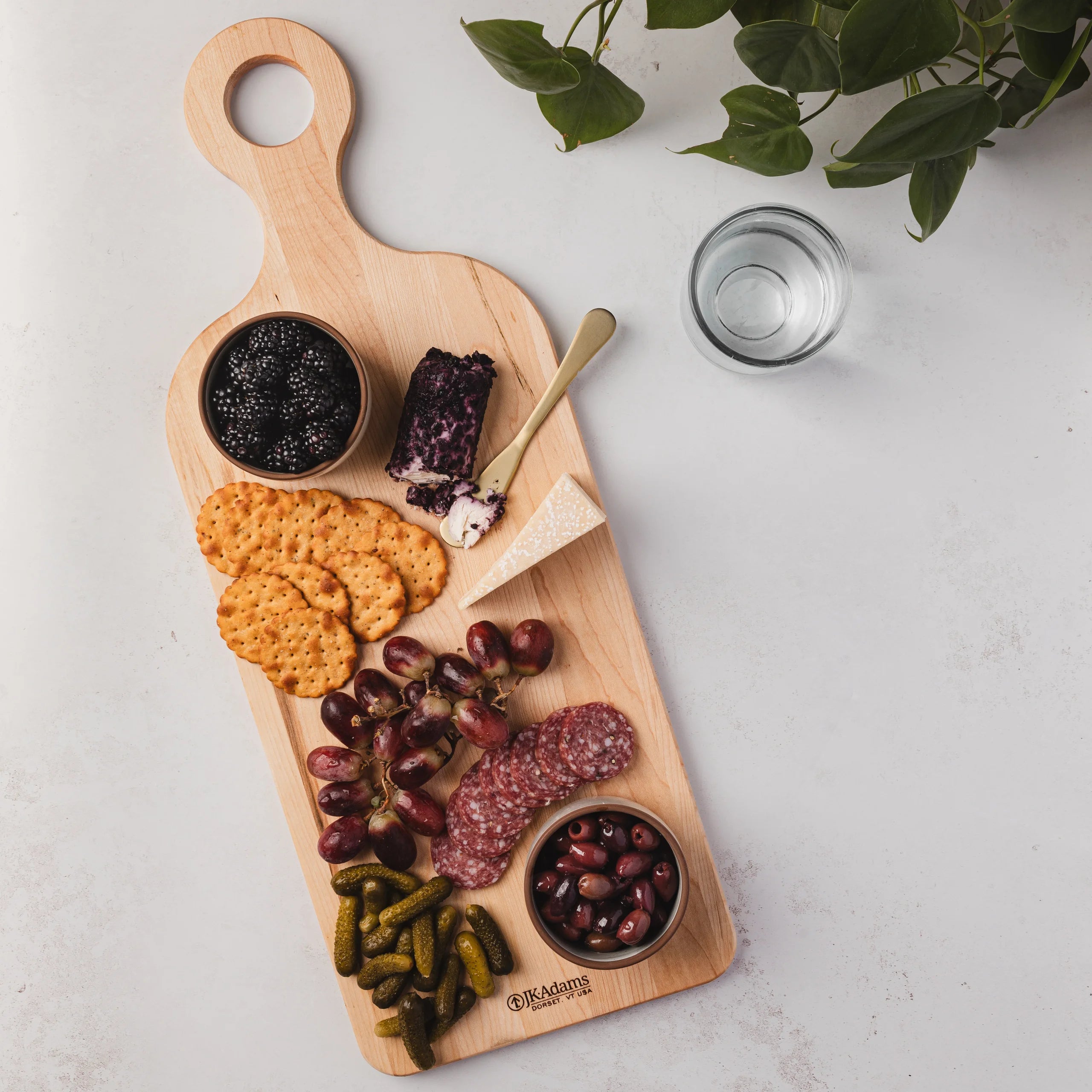 Bring rustic charm and refined craftsmanship to your kitchen or table with the J.K. Adams - 24" x 9" Peacham Maple Paddle Board. Handcrafted from sustainably harvested North American maple, this elongated paddle-style board features a smooth surface and integrated handle, perfect for serving artisanal breads, cheeses, charcuterie, or appetizers. Its generous size and timeless design make it an elegant centerpiece for entertaining or everyday use.