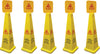 The four sided cone-shaped wet floor sign clearly displays the warning message on all sides. The top of the cone will accommodate a sign