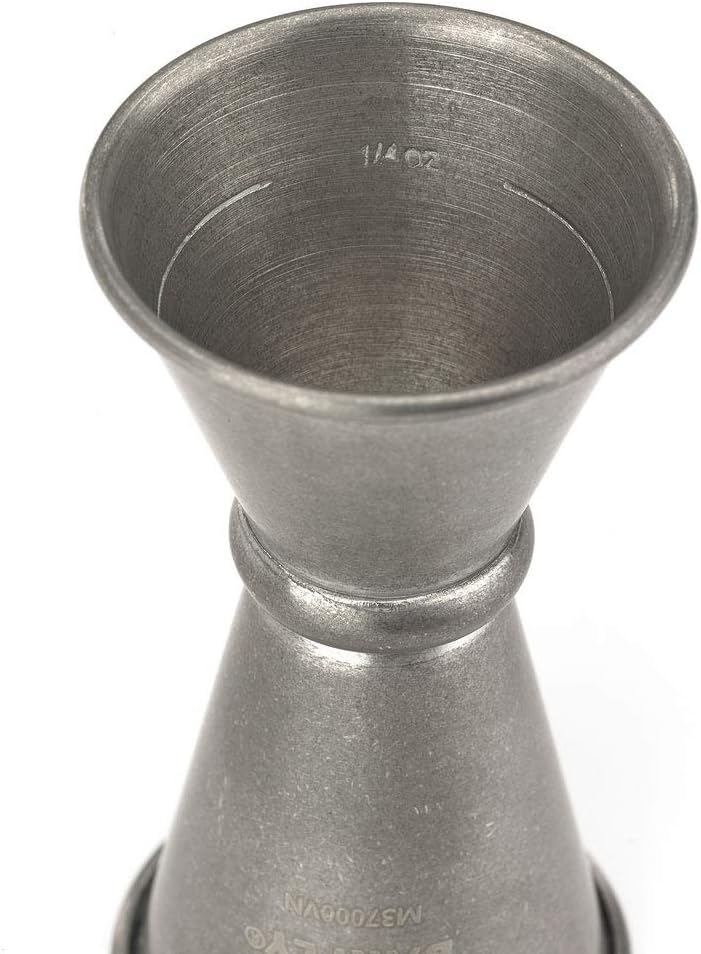 Constructed from high-quality materials, these jiggers are built to withstand the rigors of professional use. The durable construction ensures that they maintain their integrity over time, making them suitable for use in busy bars, restaurants, or home settings where precision and reliability are essential. The ergonomic design of these jiggers enhances ease of use, providing a comfortable grip and allowing for precise pouring. The tapered spout ensures controlled pouring, minimizing spillage and waste, while the raised markings on the interior provide clear and easy-to-read measurements for accurate mixing. In addition to their practical functionality, these jiggers also make a stylish statement on any bar counter or tabletop. The vintage-inspired finish adds character and charm to any setting, while the classic design complements a variety of decor styles, from traditional to contemporary.