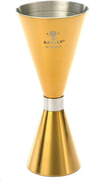 In addition to their stylish design, these slim style jiggers are also practical and easy to clean. Simply wash them by hand with warm, soapy water after each use, and they will maintain their gleaming gold plated finish for years to come. The durable construction ensures that these jiggers can withstand frequent use and remain in excellent condition, even with daily use in a busy bar environment. Whether you're a seasoned bartender or a home mixologist, the Barfly 1 x 2 oz Gold Plated Slim Style Jigger with Stainless Band Set is an indispensable tool that will enhance your cocktail-making experience. With their luxurious design, precise measurements, and durable construction, these jiggers are sure to become a staple in your bar toolkit. Elevate your cocktail game and impress your guests with the opulence and functionality of the Barfly Gold Plated Slim Style Jigger Set.