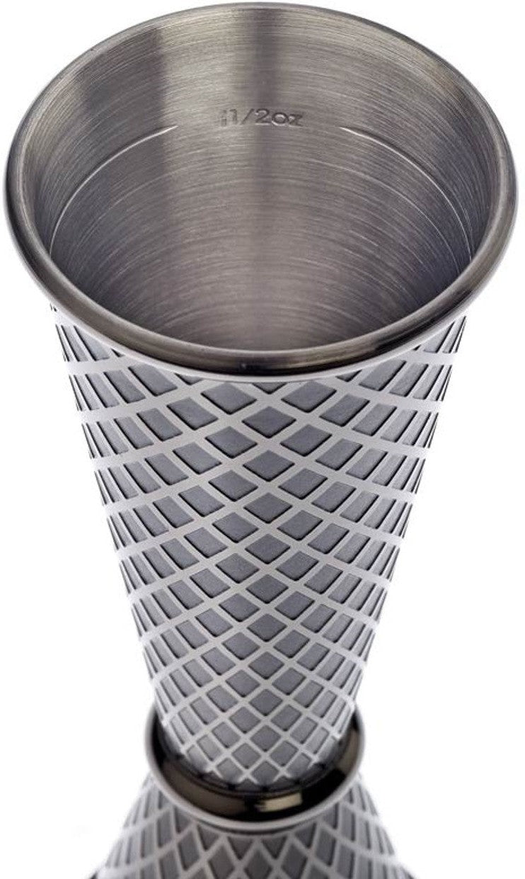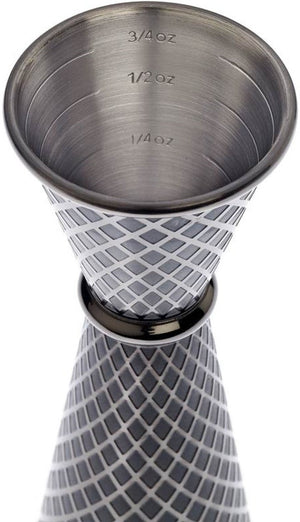 Barfly - 1 x 2 Oz Gun Metal Black Diamond Lattice Japanese Style Jigger - M37202BK