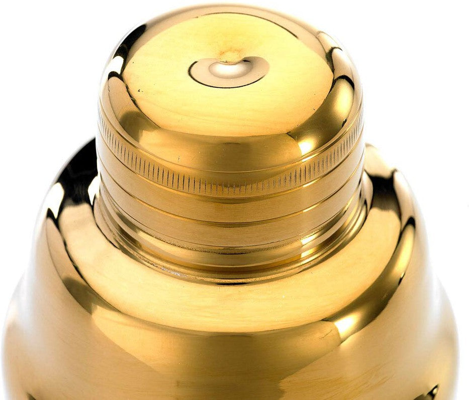 Built from durable 18/8 stainless steel, this shaker provides exceptional strength, sanitation, and long-lasting corrosion resistance—ensuring it stands up to the fast pace of commercial service. The luxurious gold-plated mirror finish adds a striking touch of sophistication behind any bar.