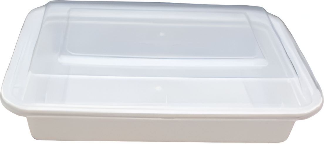 This Kari-Out 28 oz. 6" x 8" White rectangular microwavable container with lid is perfect for packaging food at your kiosk, food truck, convenience store, or casual restaurant. The container includes a clear, tight-fitting lid for optimal product visibility and protection from messes and spills. The 28 oz. capacity of the container makes it suitable for salads, pastas, entrees, and other food items. Its flat top and bottom design ensures easy stacking in to-go bags, making it convenient for takeout and food delivery. The container is made of durable, heavyweight polypropylene that is strong enough to support hefty foods without bending or cracking, while remaining lightweight for easy transportation.