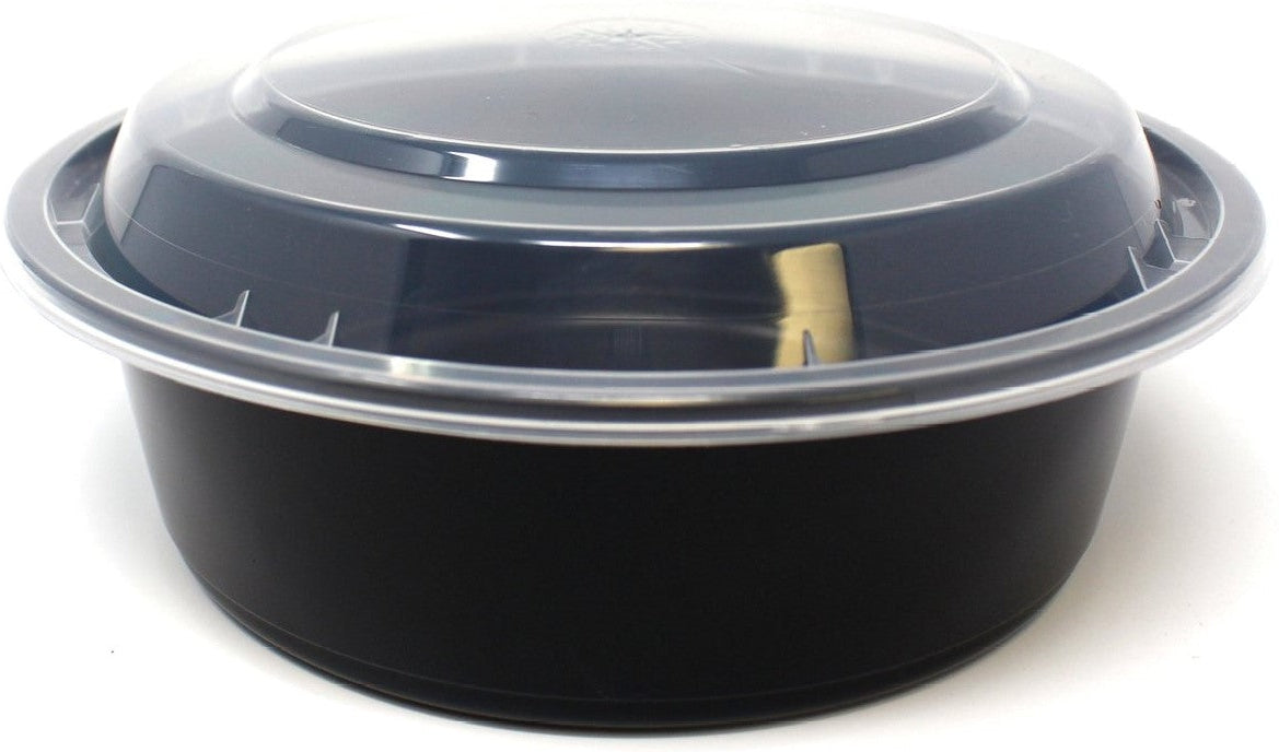 The case contains 150 black containers along with 150 clear lids, providing a complete package for your food packaging needs. The black containers offer a sleek and professional appearance, while the clear lids allow for easy visibility and identification of the contents.