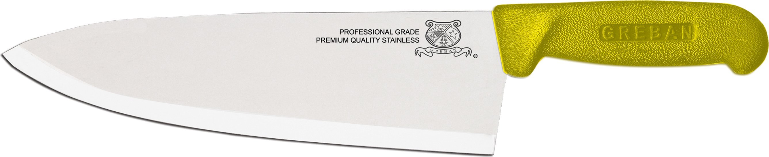 Omcan - 10" Yellow Handle Greban Medium Blade Cook Knife, Pack of 10 - 12127