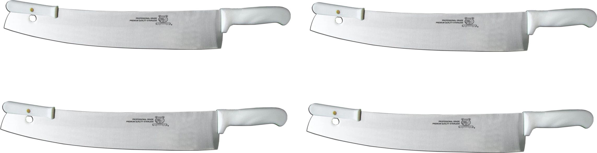 Quickly slice and serve your signature pizza pies with the help of this pizza knife. For added safety, this pizza knife features a durable and strong double handle. Its blade is made from stainless steel and is easy to clean. With its unique design, this pizza knife will enable you to speedily and efficiently cut your pizzas and have them ready to be served. Just hold the smaller handle down so that the blade is against the table, and lift the other end up and down to create your pizza slices! It's that easy!