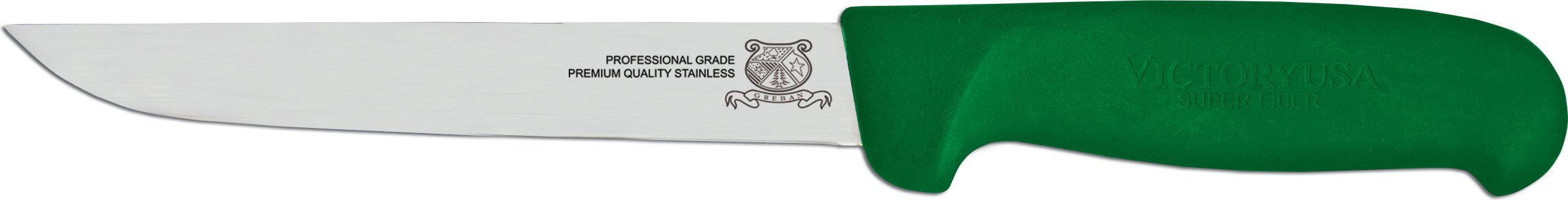 Omcan - 6” Green Super Fiber Handle Victoria USA Straight Blade Boning Knife, Pack of 5 - 23867