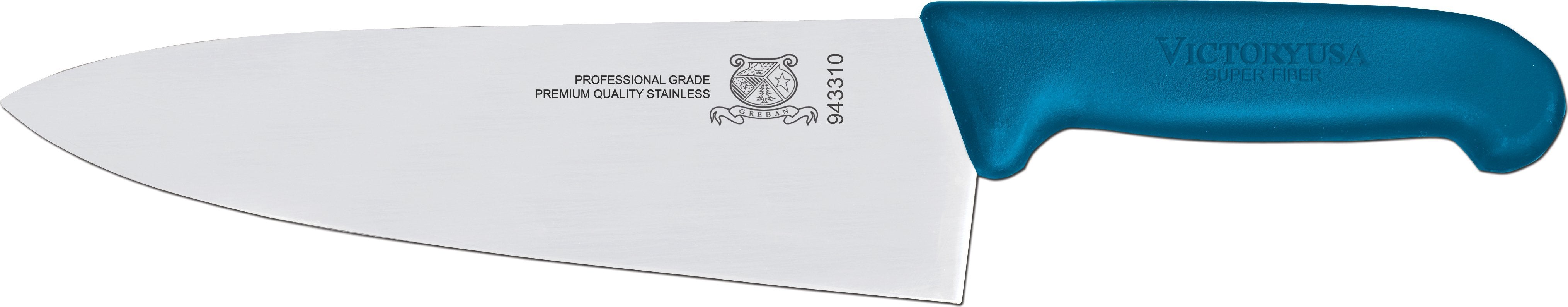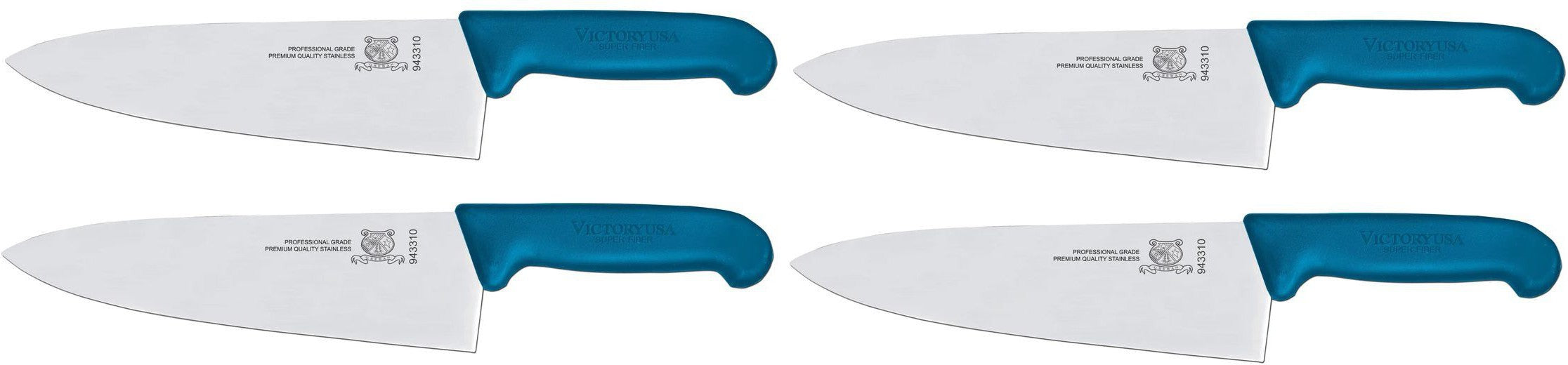 Omcan - 8” Blue Super Fiber Handle Medium Cook's Knife, Pack of 4 - 23874