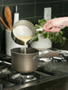 RSVPIdeal for melting butter, chocolate, heating soup, or leftovers. This serious little pan can be used to measure ingredients then take right to the stovetop for cooking. The pan is perfectly balanced with a long, angled handle connected with substantial rivets to the heavy-duty pan.
