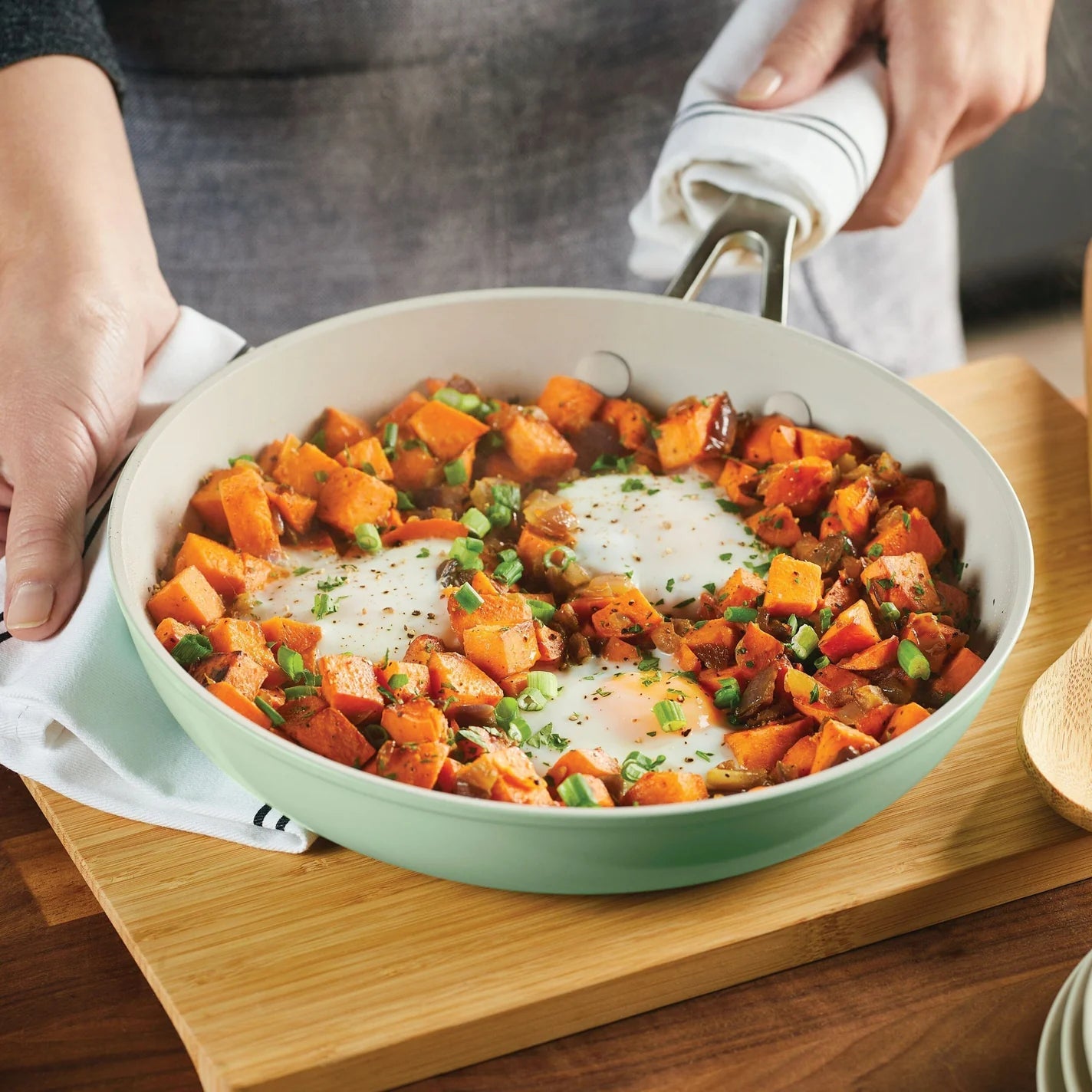 Built to last, this fry pan is 8x harder than traditional aluminum, offering exceptional durability and long-lasting performance. You can rely on it to withstand the demands of daily cooking and maintain its superior performance over time. Safety is a top priority, and this fry pan is made without PFAS, PFOA, lead, or cadmium, ensuring a safe and healthy cooking experience for you and your loved ones. You can cook with confidence, knowing that harmful chemicals are not present in the non-stick coating.