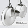 LASTING CONSTRUCTION: Pots and pans are crafted from heavy-duty stainless steel 5-ply clad and feature a unique brushed base to hide wear and tear for long-lasting durability.