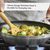 DURABLE CONSTRUCTION: Frying pan is crafted from heavy duty stainless steel and is tough enough to stand up to everyday use and experimentation in the kitchen.