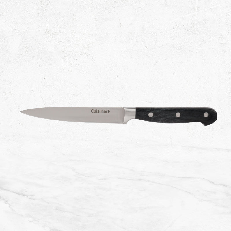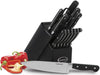 Prep meals like a kitchen pro with this 12-piece knife block set from Cuisinart. The nitrogen-infused stainless steel blades are precision tapered to create an extremely fine edge that maintains its sharpness. Comfortable pakkawood handles are hygienic, moisture resistant, and durable.