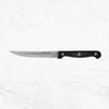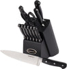 Set includes: 8 inch (20 cm) Chef Knife, 7 inch (18 cm) Santoku Knife, 5 inch (12 cm) Utility Knife, 3.5 inch (9 cm) Paring Knife, 4.5 inch (11.4 cm) Serrated Steak Knives x 6, Shears and Black Wooden Block.