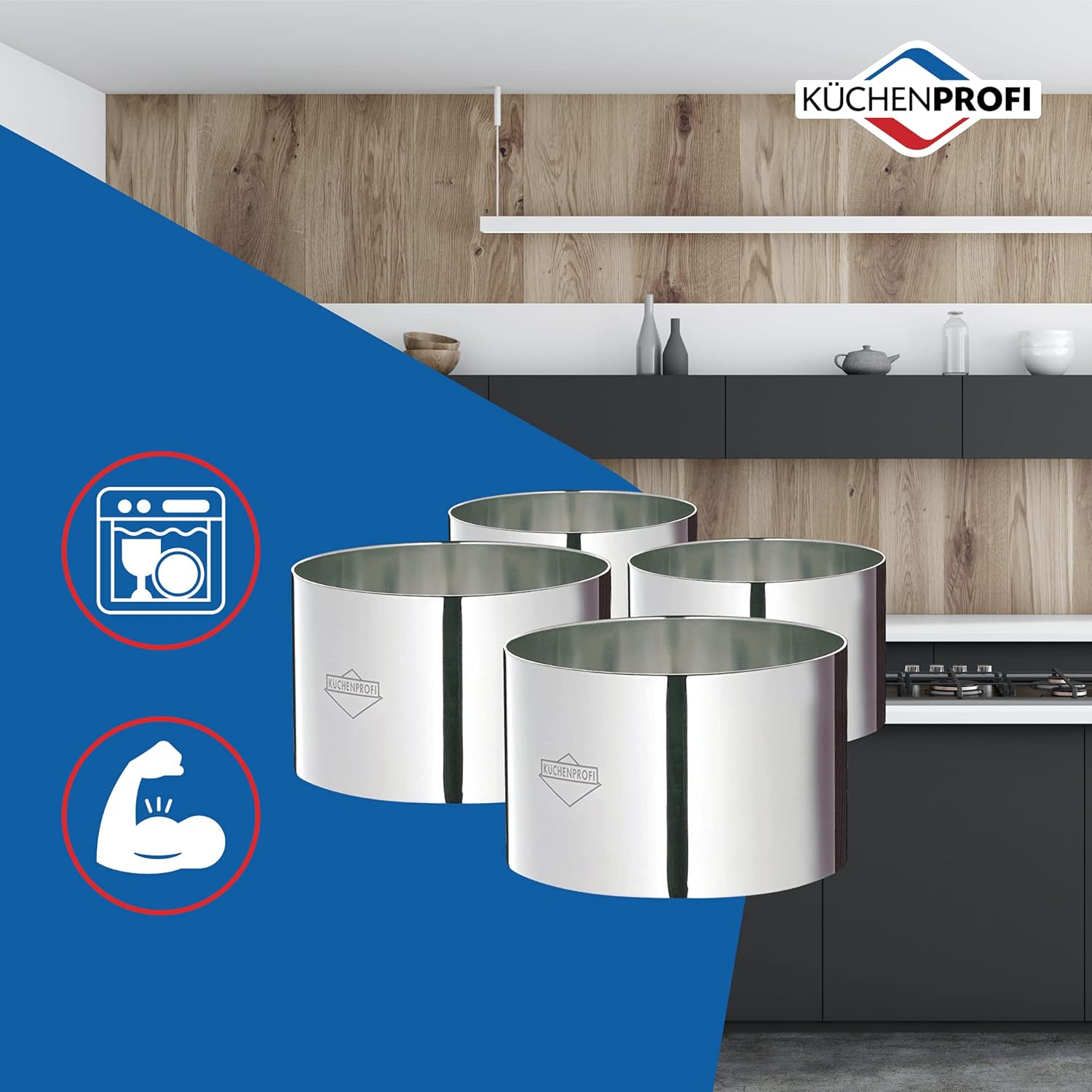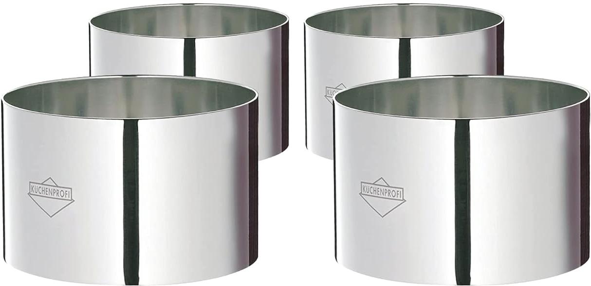 Enhance your kitchen toolkit with the Kuchenprofi 4-Piece 3" Stainless Steel Cooking Rings—a must-have for beautifully crafted dishes every time!
