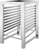 The Lainox CSR101+CPT061 Stainless Steel Stand with Side Runners is specifically designed for use with the Lainox Compact Naboo and Compact Sapiens series combi steamers. This sturdy stand accommodates up to 10 GN 1/1 containers, offering both reliable support and convenient storage in a compact footprint. Crafted from high-quality stainless steel AISI 304 with a square tube profile, this stand is built to withstand the demands of a professional kitchen while being easy to clean and maintain.