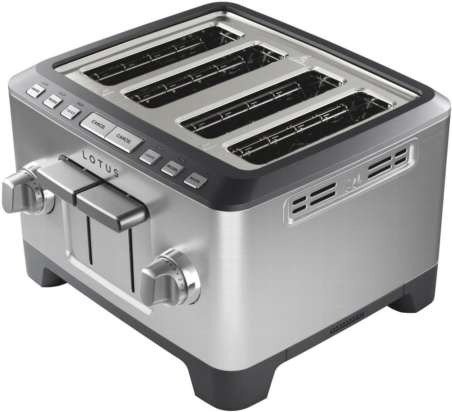 Built for precision, capacity, and durability, the Lotus Professional Series Four Slice Precision Toaster delivers consistently even results across a wide range of breads. Its die-cast construction, stainless-steel finish, and commercial-grade heating elements ensure reliable performance, while four extra-wide slots and self-centering guides make it easy to toast everything from thin sandwich bread to thick bagels and waffles. Designed for both convenience and control, this toaster brings professional-level results to everyday kitchens.