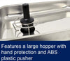 - Larger tray, hand protection and features high performance 1/4" plate and European-style knife