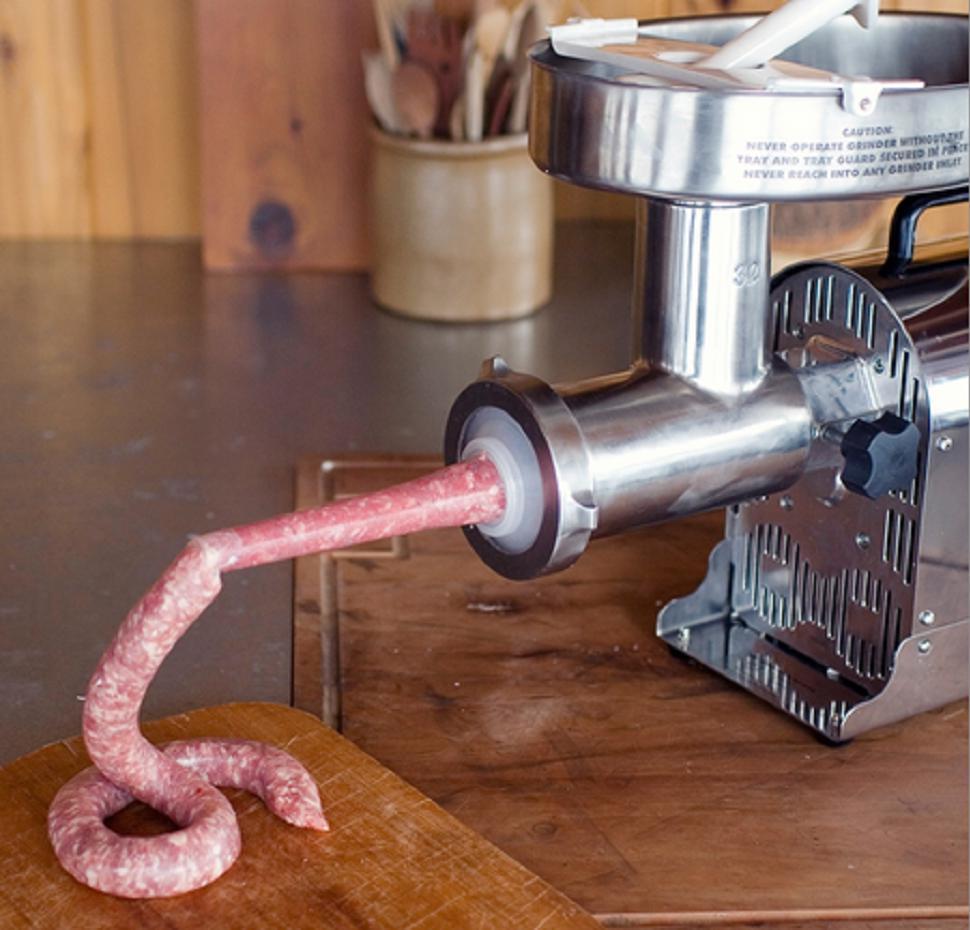 The included sausage stuffing kit comes with an adapter, spacer, and four-size funnels (10mm, 20mm, 30mm, and 40mm) to make everything from snack sticks and pepperoni to kielbasa and lunch meats.
