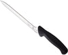 The Mercer Millennia® 8" Japanese Steel Wavy Edge Offset Bread Knife, designed to elevate your culinary experience with precision and comfort. Crafted from a single piece of high-carbon Japanese steel, this knife ensures easy edge maintenance and swift sharpening, delivering a consistently razor-sharp edge with minimal effort. Experience unparalleled control and comfort with the raised Santoprene® textured handle, providing an enhanced grip for effortless maneuverability during use. The wavy edge design features teeth along the blade's edge, allowing for easy penetration of tough outer crusts or skins while safeguarding the delicate inner layers from tearing, ensuring pristine slices every time. Textured finger points offer slip resistance and added safety, while a protective finger guard enhances user security during slicing tasks. Combining Santoprene® for comfort and polypropylene for durability, the ergonomic handle ensures long-lasting performance, making it an indispensable tool in any kitchen. Upgrade your slicing experience with the Mercer Millennia® 8" Japanese Steel Wavy Edge Offset Bread Knife, where precision meets comfort for exceptional culinary results.