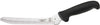 The Mercer Ultimate White 8" Wavy Edge Offset Bread Knife with Black Handle, a versatile tool designed for precision and efficiency in the kitchen. Crafted from razor-sharp, high-carbon Japanese steel, this knife ensures superior cutting performance with every use. Its hollow ground blade not only facilitates easy edge maintenance but also allows for rapid sharpening, ensuring that your knife stays sharp and ready for action. The ergonomic polypropylene handle is thoughtfully designed with textured finger points, providing a comfortable and secure grip for enhanced slip resistance and safety during use. Additionally, the handle's offset design allows for optimal leverage and control, making it easier to slice through even the toughest crusts or skins. Featuring a unique wavy edge design, this knife boasts teeth along the blade edge that effortlessly penetrate the outer crust or skin of various foods while safeguarding the soft inner part from tearing. Whether you're slicing through crusty bread or delicate pastries, this knife delivers precise cuts with minimal effort. For added safety, the knife is equipped with a protective finger guard, ensuring peace of mind during use. Experience the perfect balance of performance, comfort, and safety with the Mercer Ultimate White 8" Wavy Edge Offset Bread Knife with Black Handle a must-have tool for any kitchen enthusiast or professional chef.