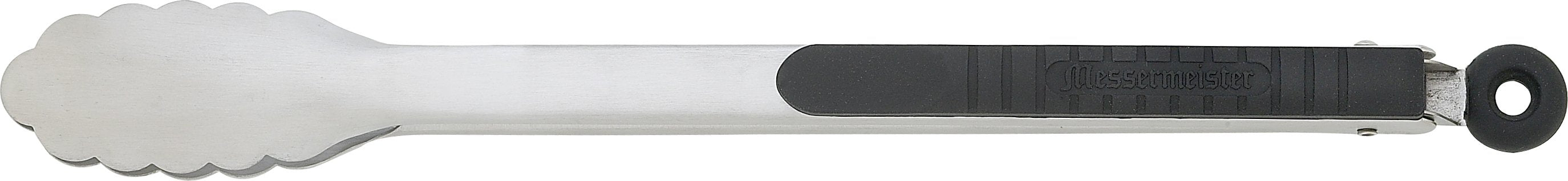 The Messermiester 12" Locking Tongs are made of high quality, stainless steel designed with non-slip, silicone grips to fit and cushion your hand. The scalloped head grips gently without tearing or breaking the food. The stainless-steel construction guarantees durability and strength. All of our tongs feature the strongest locking mechanism on the market, and they lock in the closed position for convenient storage.