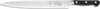 The Messermeister Meridian Elite 10" Kullenschliff Carving Knife, with alternating kullenschliffs, has a narrow spear point fine edge blade and is a useful tool for medium to large slicing tasks. The alternating kullenschliffs (a.k.a. kullens, hollows or grantons) on each side of the knife reduce drag and prevent items from sticking to the blade.