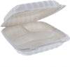 Pactiv Evergreen - 9 x 9 x 3" White 3-Compartment MFPP Hinged Lid Container, 120/cs - YCN809030000
