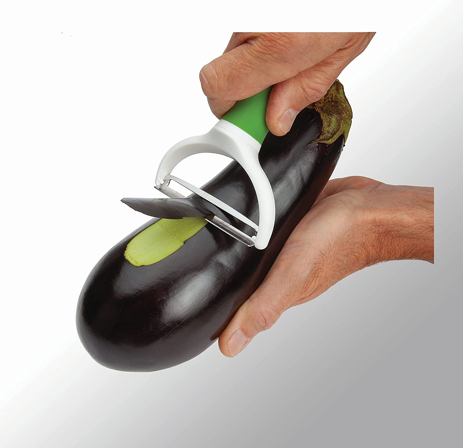 - Sharp, straight twin peeler blades for shredding lettuce and cabbage or peeling large produce