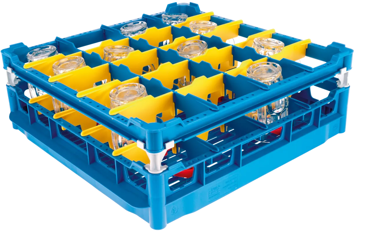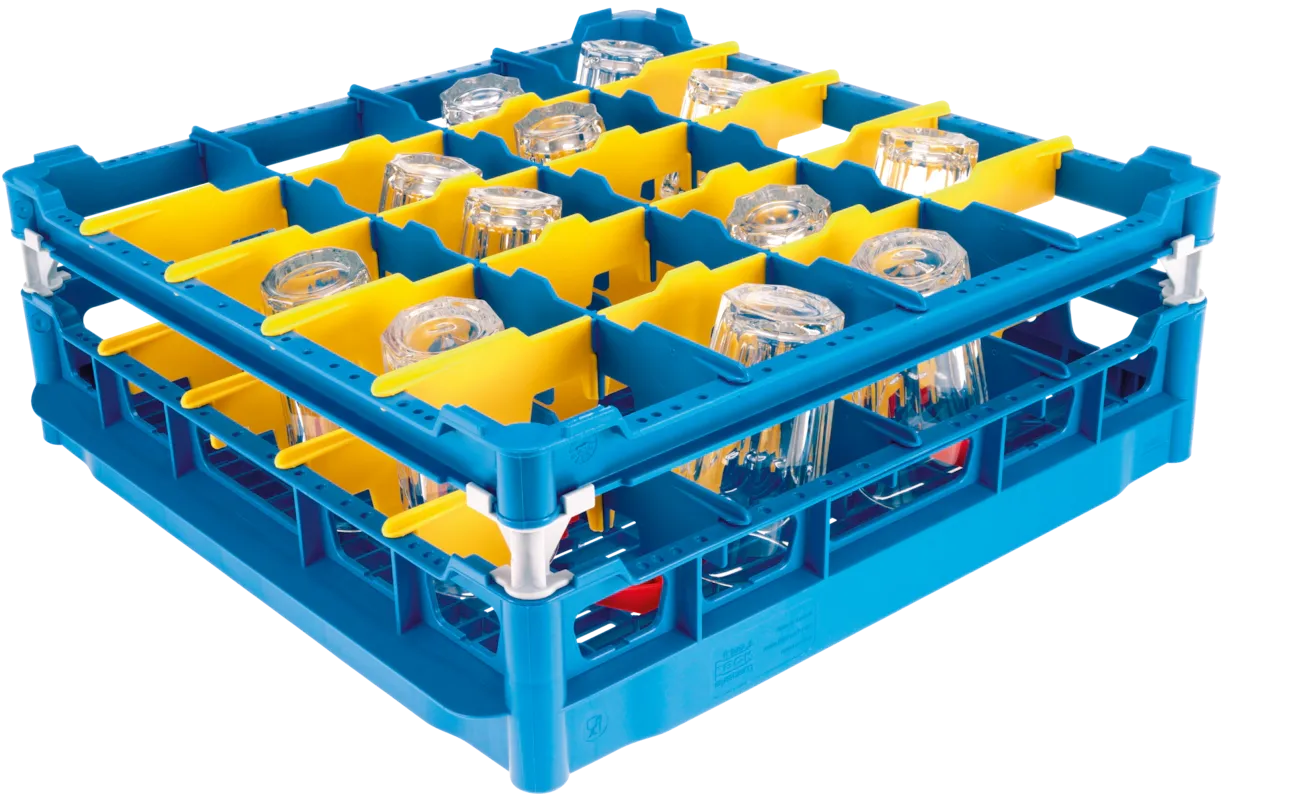- 20 individual compartments for secure glass placement