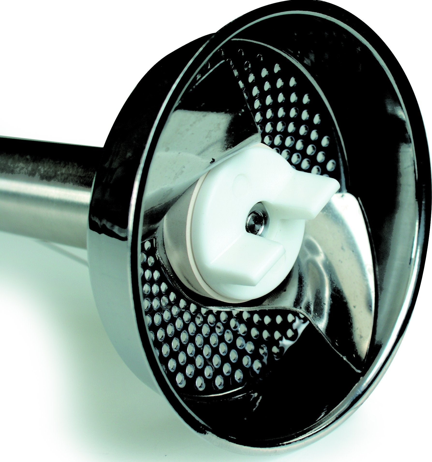 Ricer / Food Mill tool for the Senior and Master series, with stainless steel perforated grid and blade. Suitable for up to 30 lbs of mixing with Senior motor block and 65 lbs with Master motor blocks.